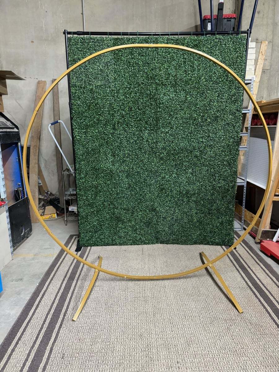 Note: The greenery background comes in 2 sections that hang from the included frame. Each of these 3 sections is made of smaller pieces that should not be taken apart. If you take the 2 sections apart, you will be charged $35.00 to cover the cost of reassembling them. By renting this item you agree to paying this fee if you disassemble one or both of the 2 sections.