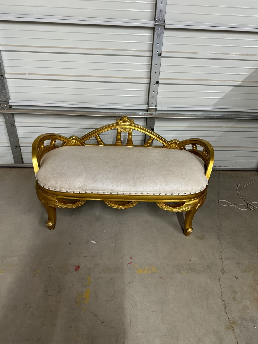 White and Gold Throne Bench for Rent in Lubbock and Wolfforth
