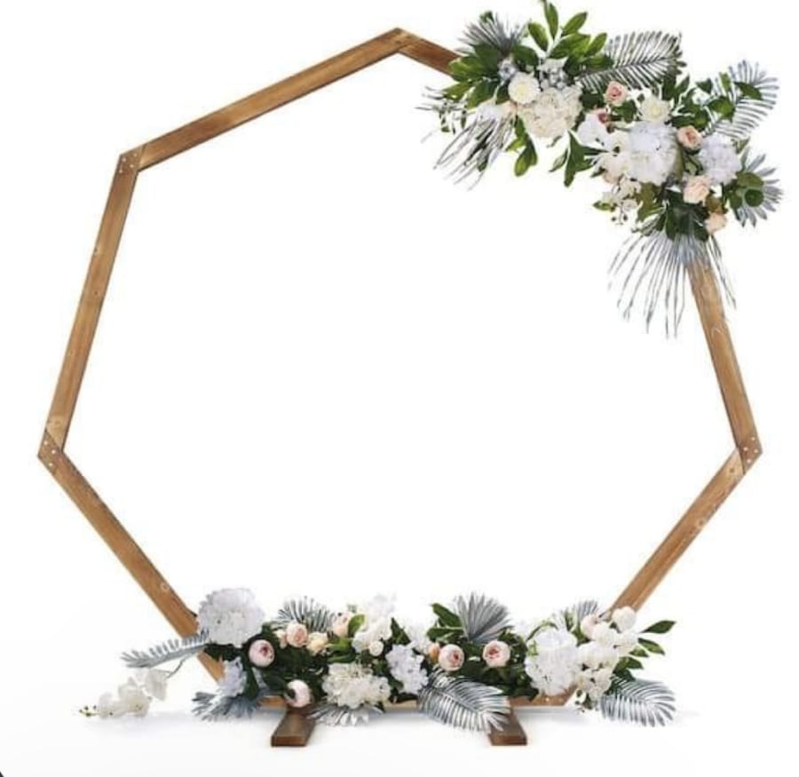 Make your wedding ceremony truly unforgettable with our Heptagon Wedding Arch. Contact us today to reserve this stunning centerpiece for your special day!